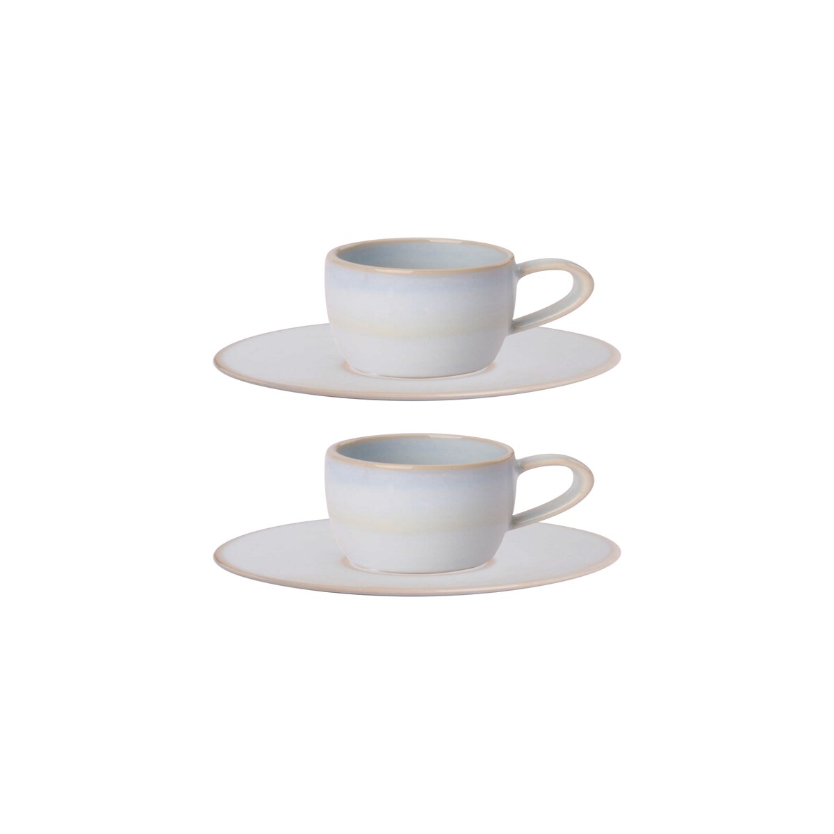 palmer Barolo Tassen und Untertasse - 2er-Set, Steinzeug, hellblau, 7 cl – 5,6 cm moderne, kompakte Form, für Espresso, Ristretto, spülmaschinenfest