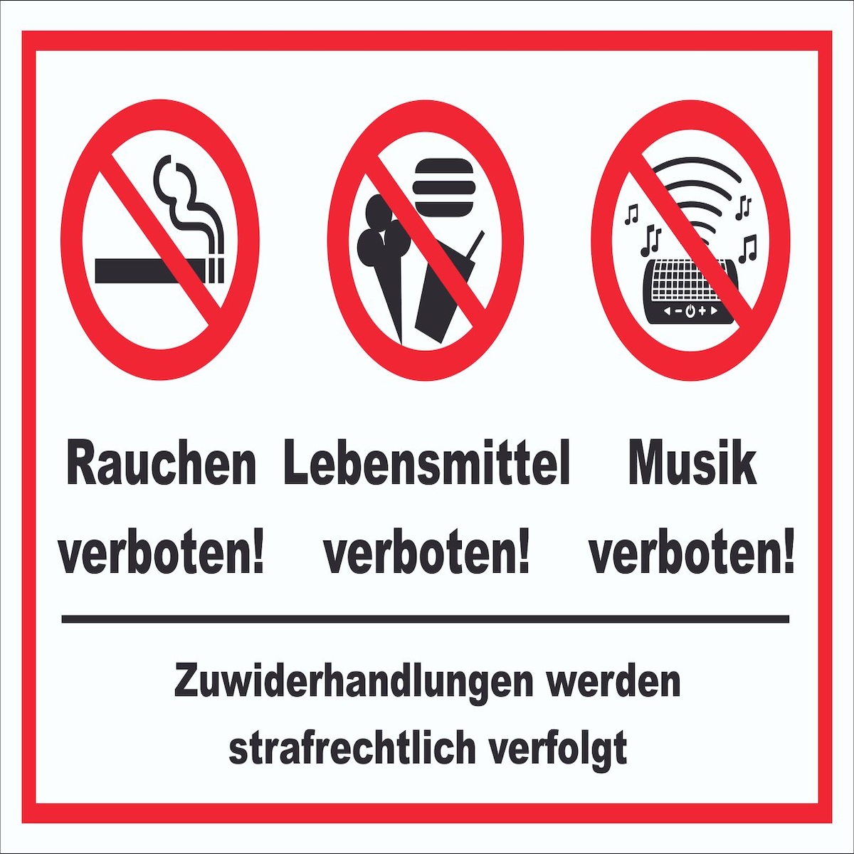 Schild Essen Trinken Musik Rauchen verboten A0 (841x1189mm)