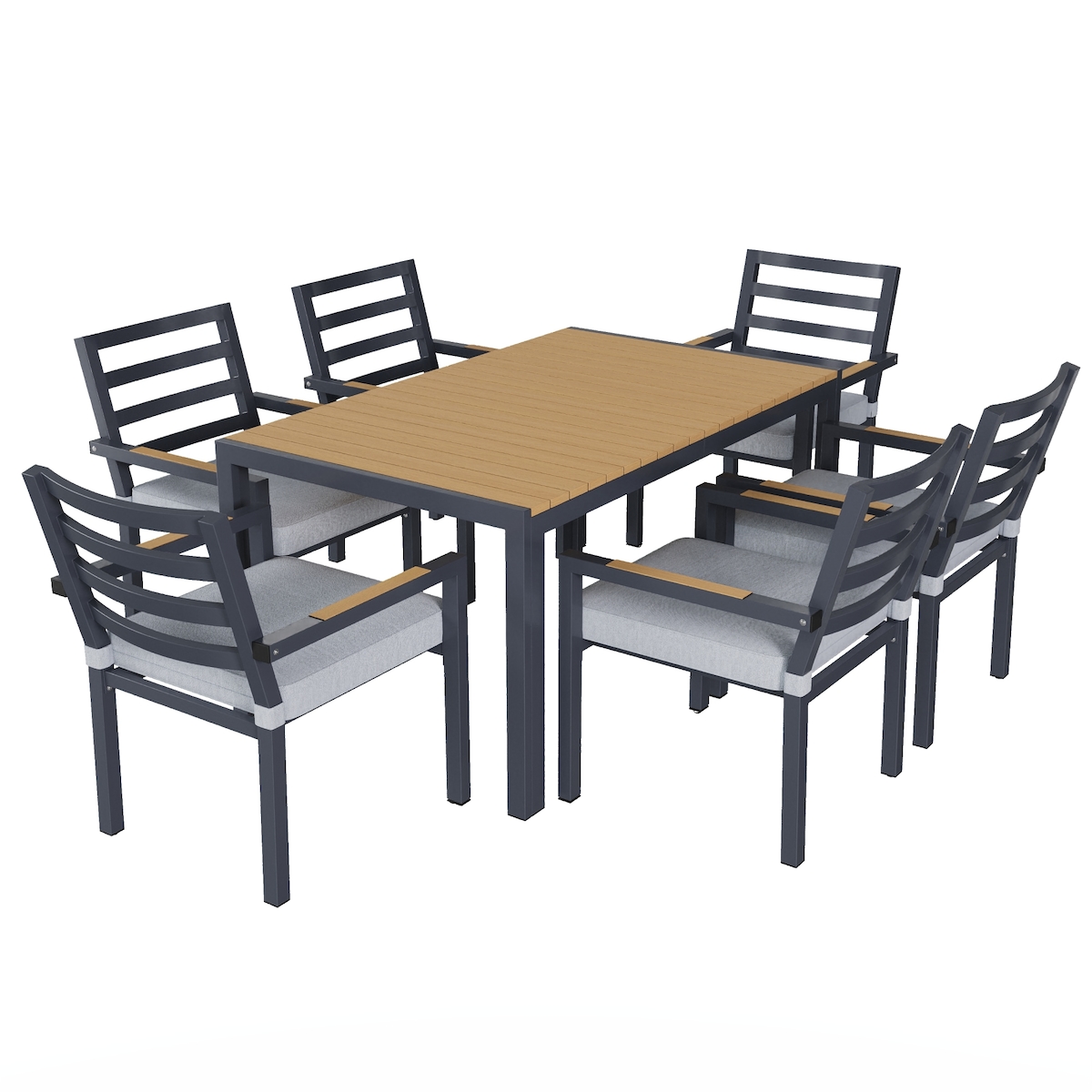 Merax Gartenmöbel Set 6 Personen, Outdoor Essgruppe mit Tisch & 6 Stühlen, verzinkter Stahl, Kunststoffholz Tisch, Grau