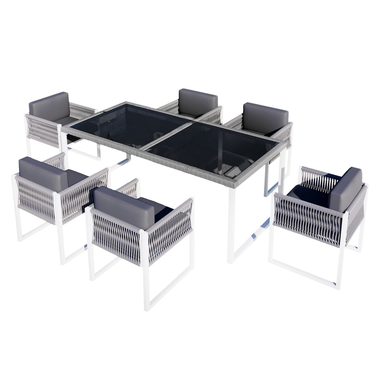 Merax Rope Garten-Essgruppe für 6 Personen, Outdoor Esstisch Set mit Sesseln, abnehmbare & waschbare Bezüge, wetterfest, Grau/Weiß