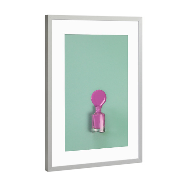 Poster mit Rahmen Silber "Nagellack mint pink" artboxONE - Fashion - Nagellack,Essie,Beauty,Farben,Bunt,Popart,Frauen,Makro,Makrofotografie