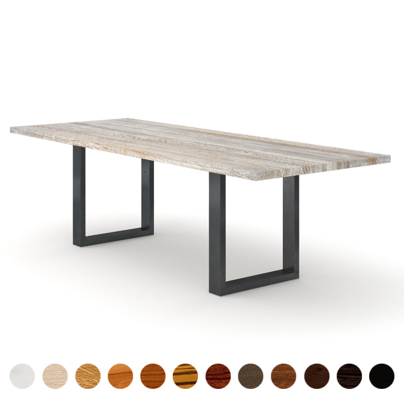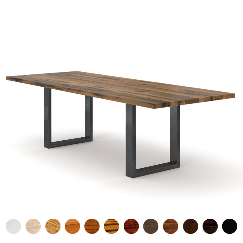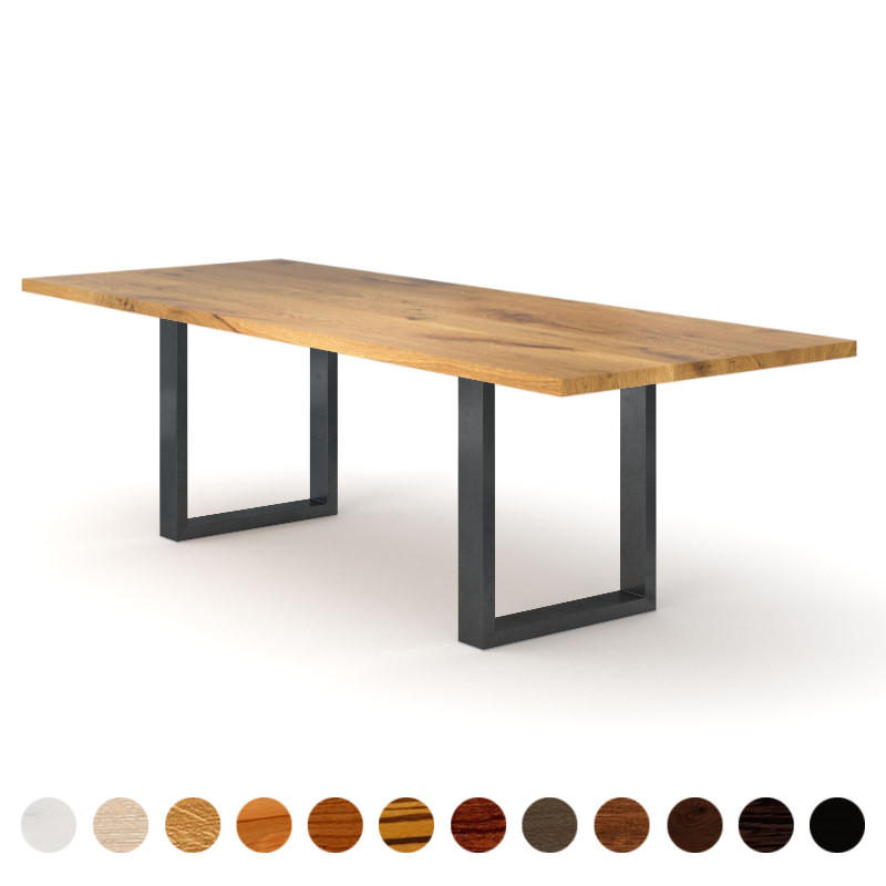 Esstisch Deluxe mit Echtholz Tischplatte Wildeiche und Metallkufen Ulm