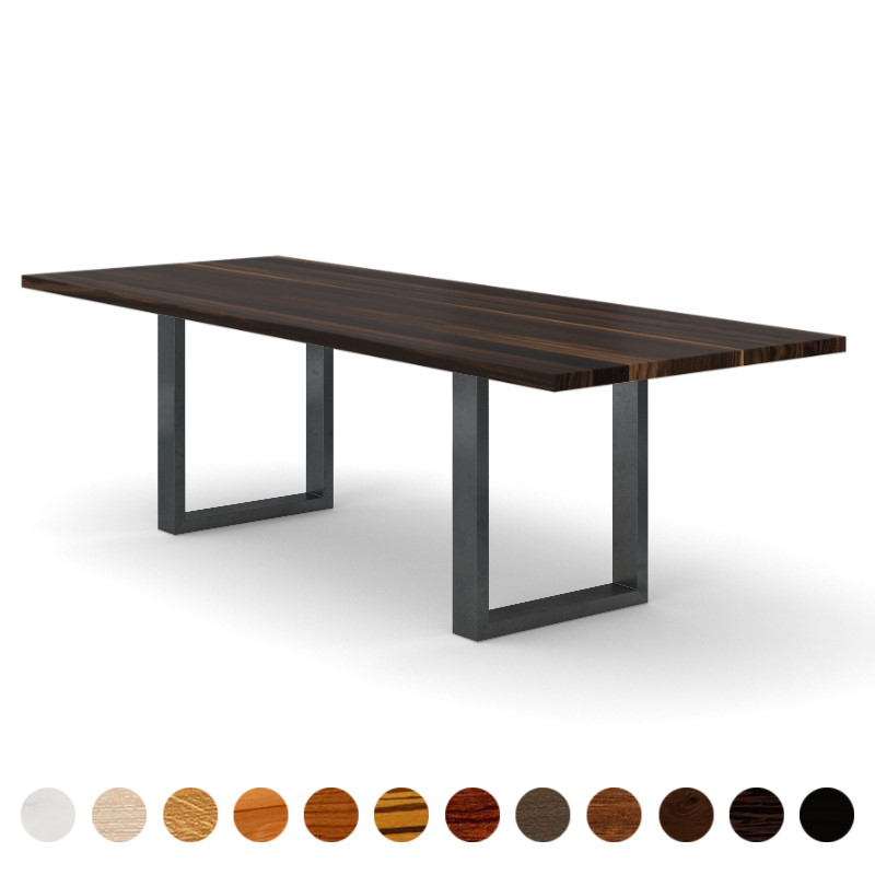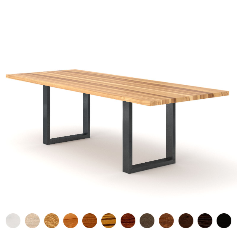 Esstisch Deluxe mit Echtholz Tischplatte Birnbaum und Metallkufen Ulm
