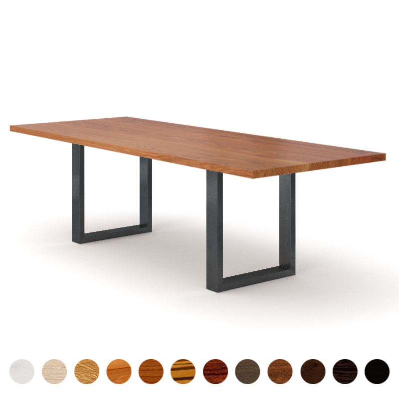 Esstisch Deluxe mit Echtholz Tischplatte Kirsche-amerikanisch und Metallkufen Ulm
