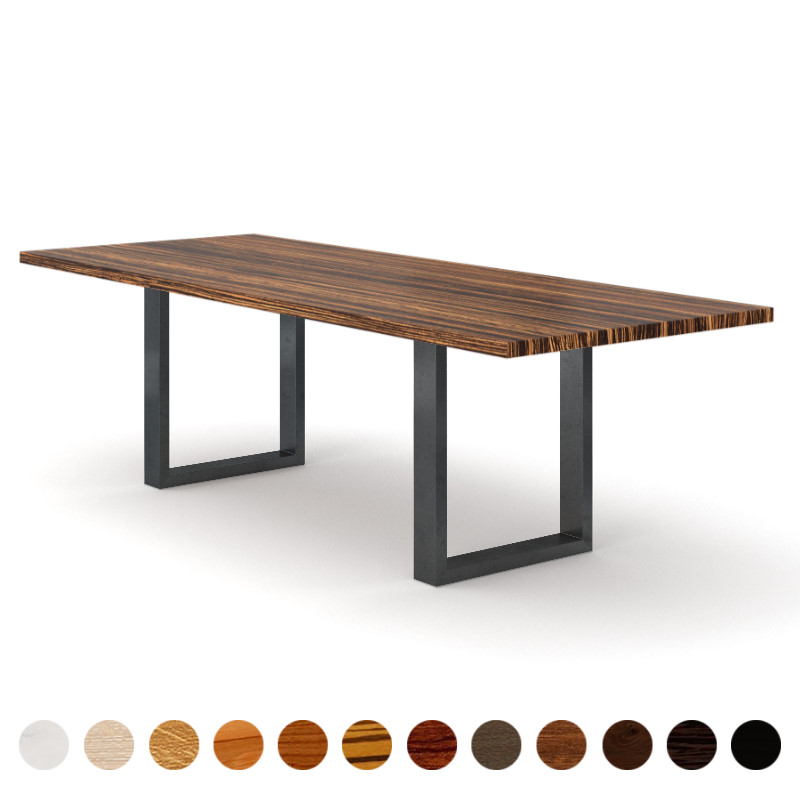 Esstisch Deluxe mit Echtholz Tischplatte Zebrano und Metallkufen Ulm