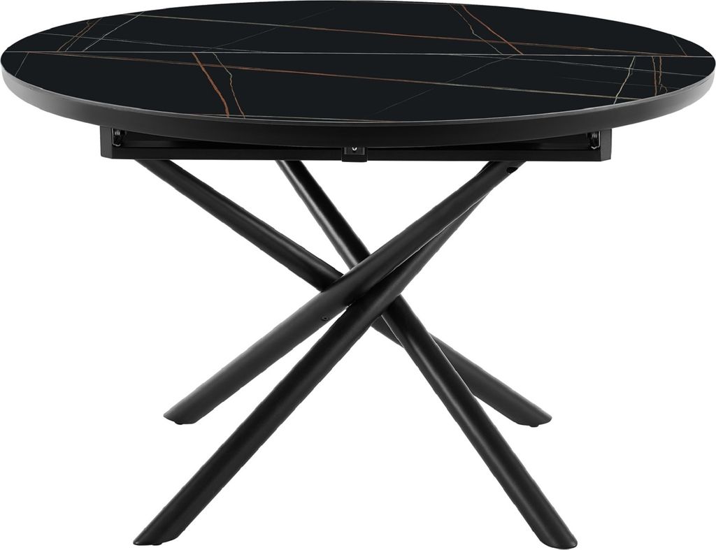 SalesFever Esstisch Ø 120 cm | rund - ausziehbar | Tischplatte Marmor-Optik aus MDF und Keramik | Gestell Metall | B 120 x T 160 x H 76 cm | schwarz