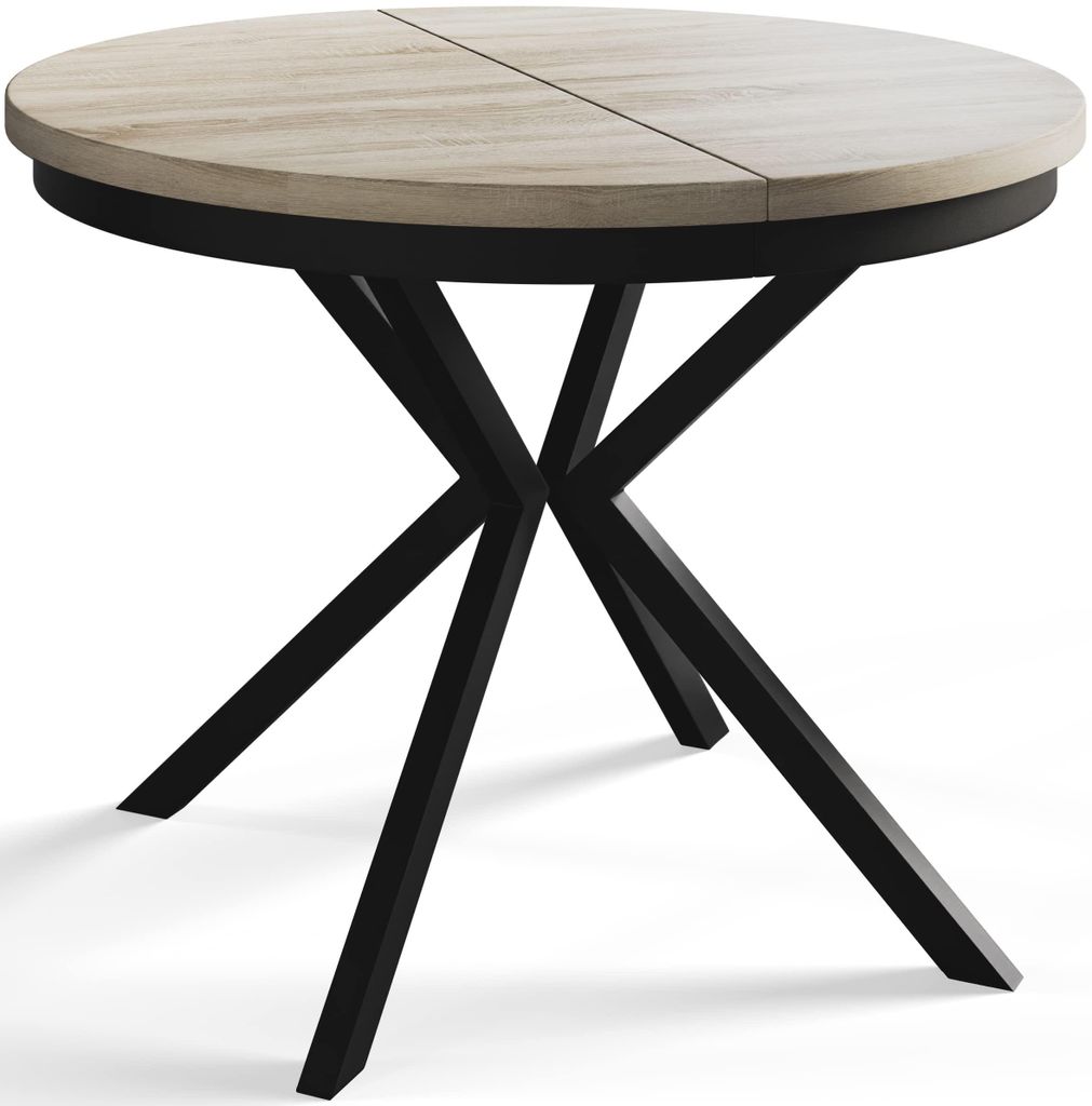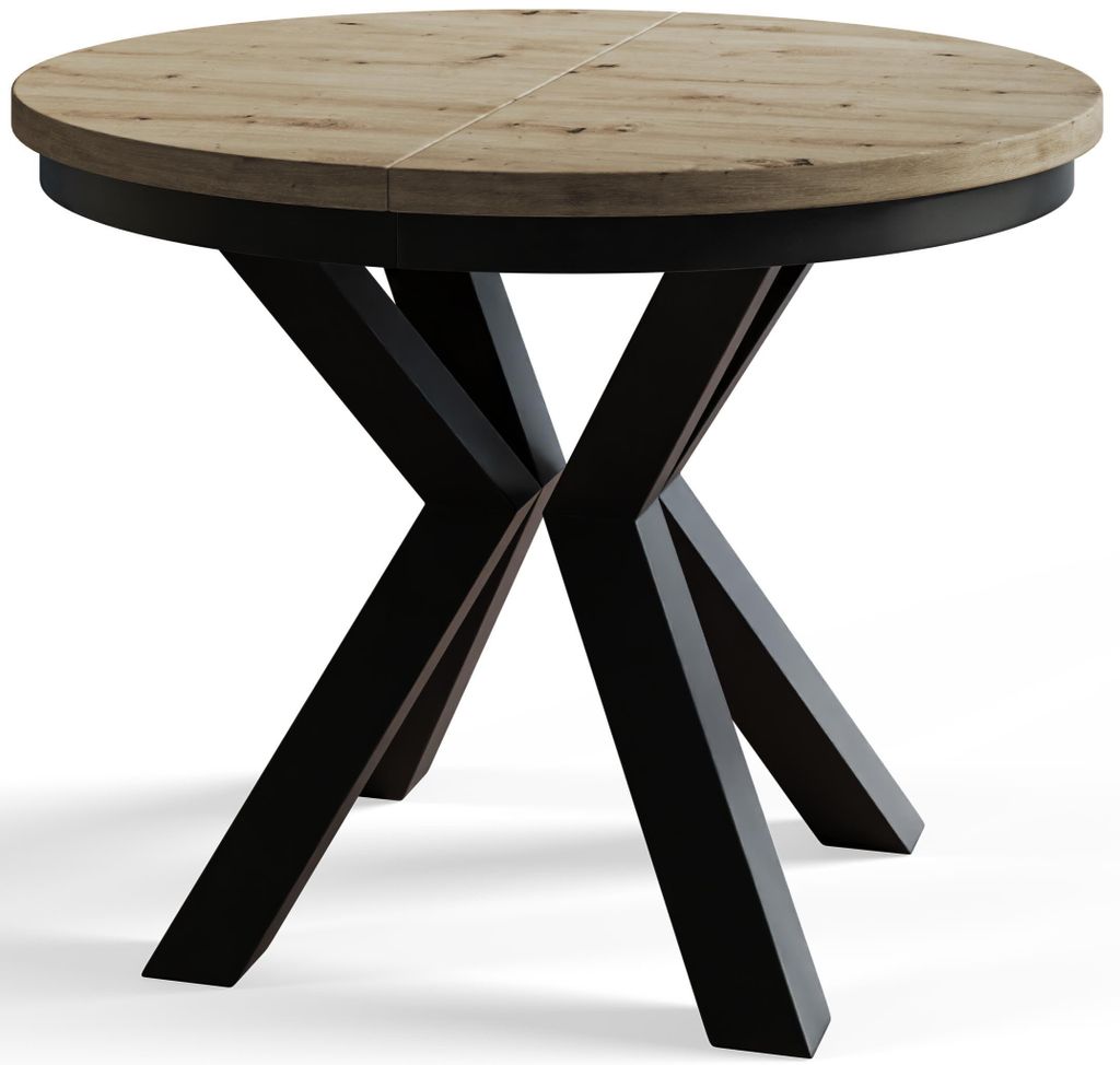 Esstisch Rund Loft Berg, Esstisch Ausziehbar 90-170 cm, Moderner Wohnzimmertisch, Craft mit Metallbeinen in Schwarz