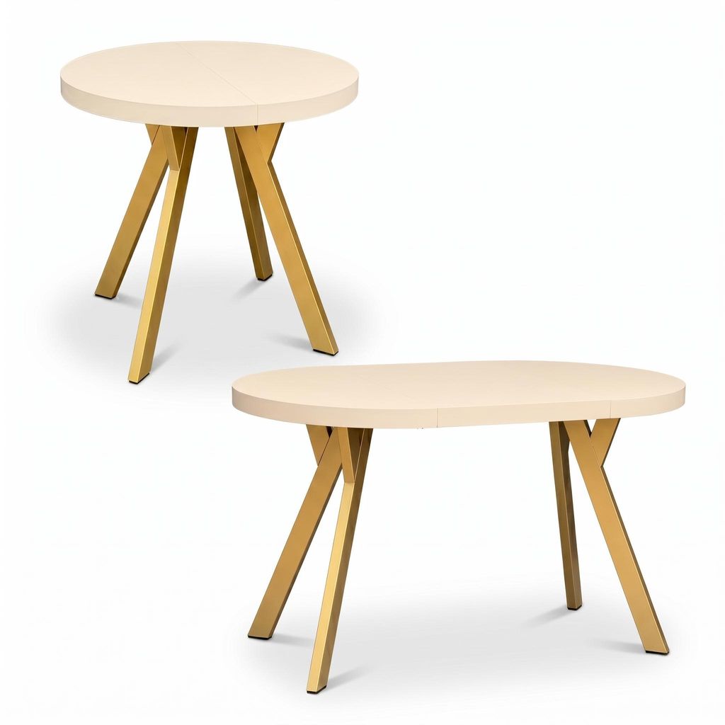 Ausziehbarer Esstisch RO-7 Rund Ø 80-130 cm – Kaschmir mit goldenen Metallbeinen
