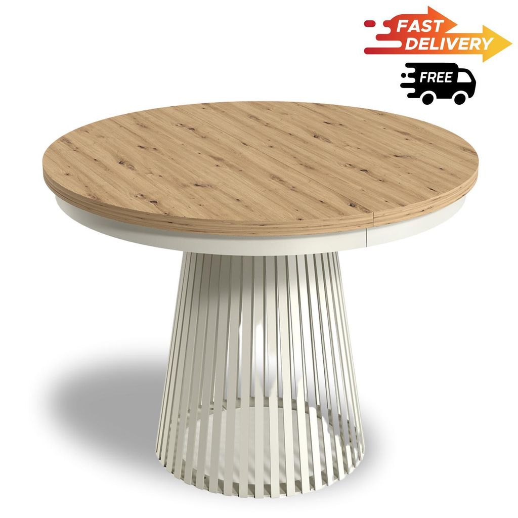 Esstisch Rund Evo, Moderner Esstich Ausziehbar, Tisch mit Stabile Konstruktion, Durchmesser 100 - 200 cm, Farbe Artisan