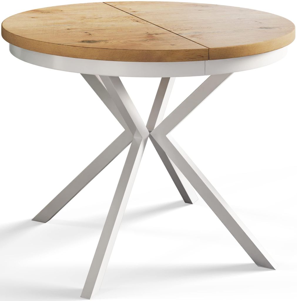 Esstisch Rund Loft Berg, Esstisch Ausziehbar 90-170 cm, Moderner Wohnzimmertisch, Lancelot mit Metallbeinen in Weiß