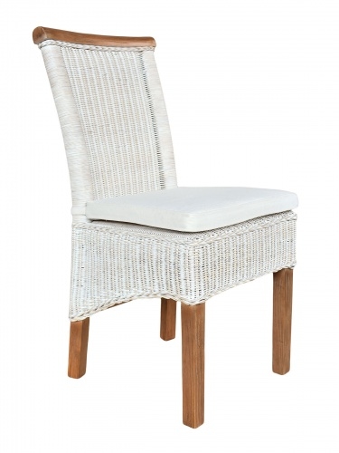 Esszimmer Stuhl Rattanstuhl Esstisch Stuhl weiß Perth Rattan natur Korbstuhl nachhaltig mit Sitzkissen