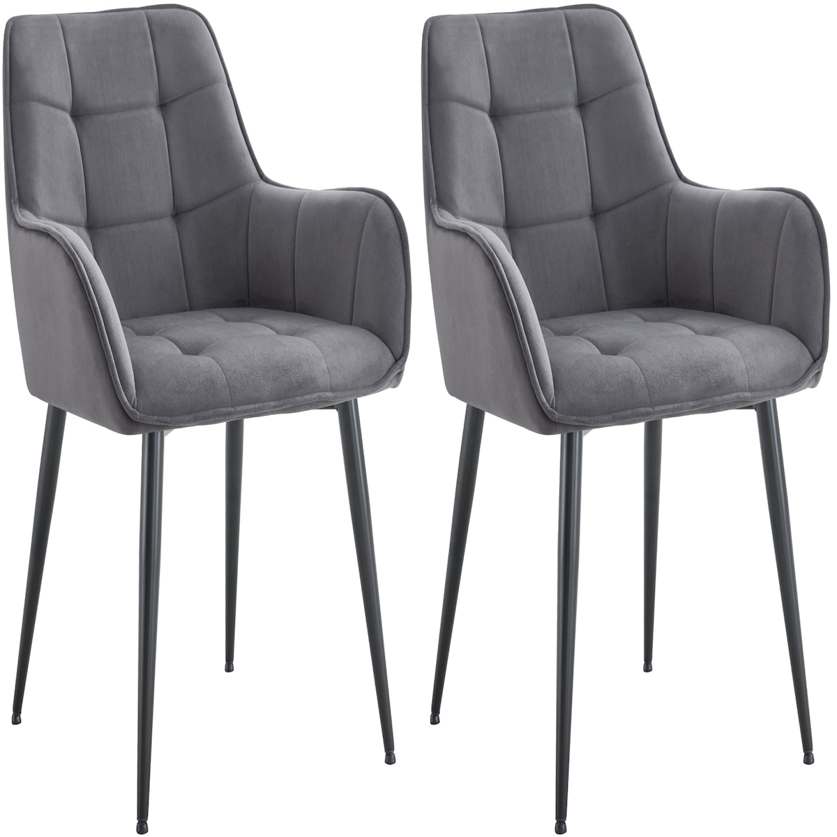 DELUKE 2er Set Esszimmerstuhl DARID - Samt Dunkelgrau 47x61x89 cm | Essstühle Esszimmerstühle Küchenstühle Wohnzimmerstühle