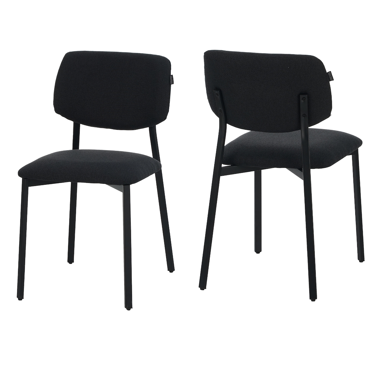 TPFLiving 2er Set Esszimmerstuhl Till Stoff Gestell Metall matt schwarz dunkelgrau