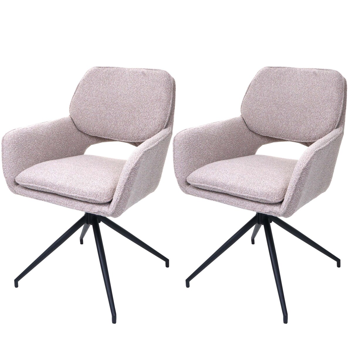 Mendler 2er-Set Esszimmerstuhl HWC-N74, Küchenstuhl, drehbar Auto-Return, Stoff Bouclé (540g/m²) Öko-Tex ~ beige