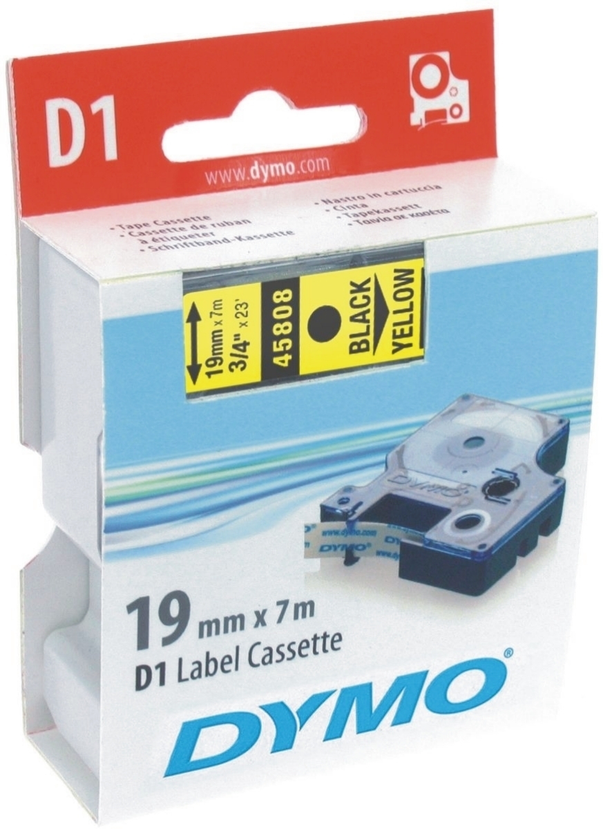 Etikettenband Dymo D1 19mm/7m schwarz/gelb Packung mit 5 Stück