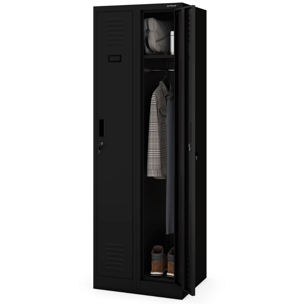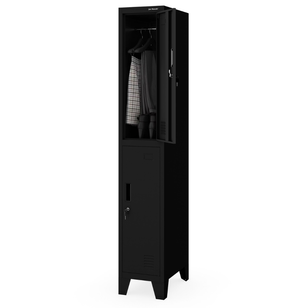 DELUKE Umkleideschrank Spind WIEN - 2 Abteile, Etikettenhalter | Umkleidespind Metall Schließfachschrank Garderobenspind, 180x60x50cm Schwarz