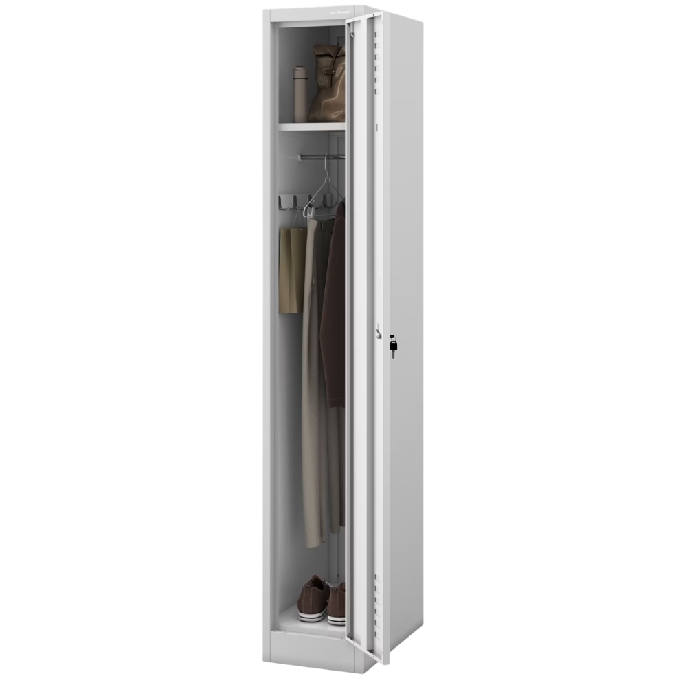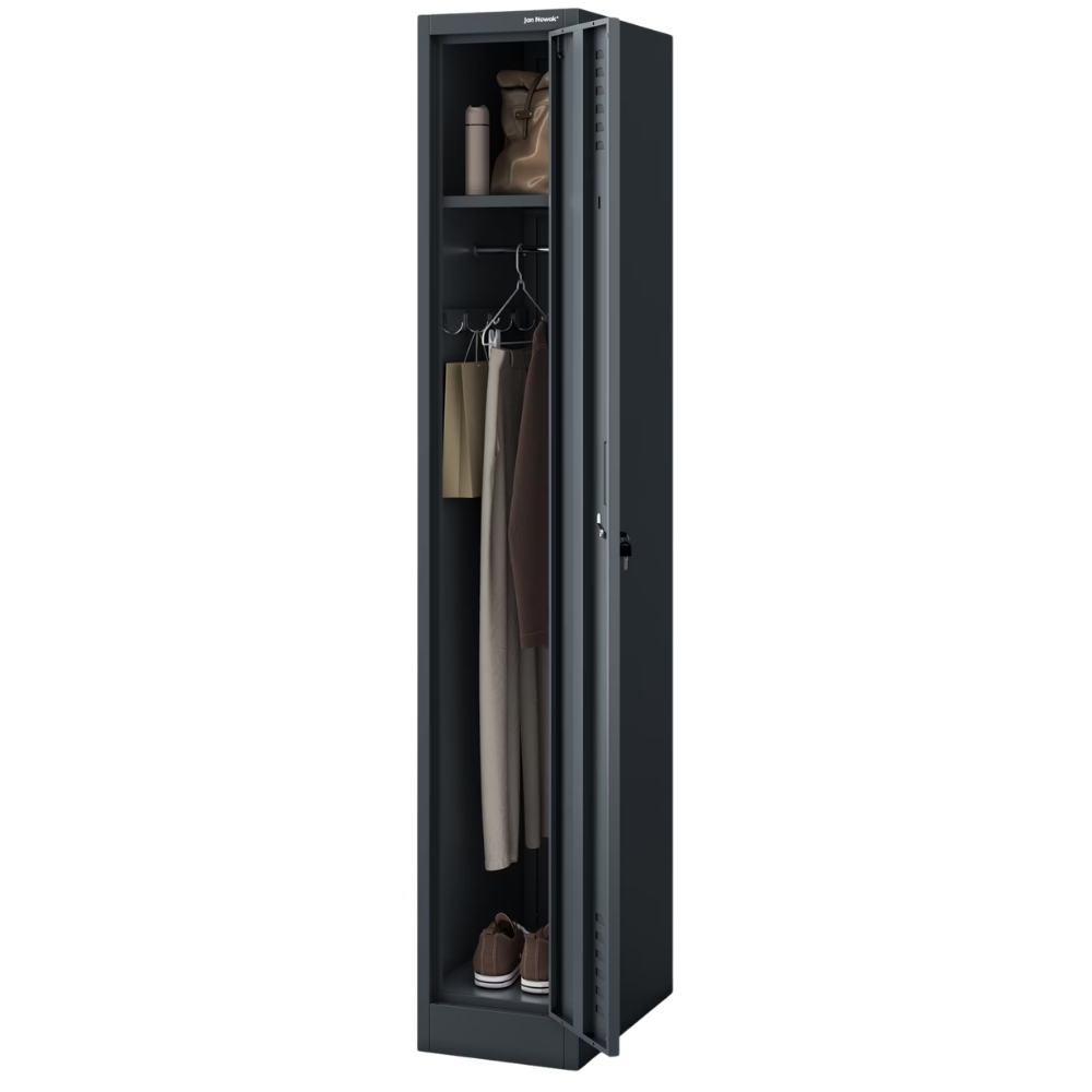Umkleideschrank Spind WIEN - 1 Abteil, Etikettenhalter Lüftungsschlitze | Umkleidespind Metall Schließfachschrank Garderobenspind, 180x30x50cm Grau