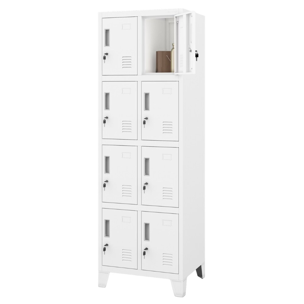 DELUKE Schließfachschrank Spind TAMPA 8 Fächer Etikettenhalter Lüftungsschlitze Wertfachschrank Umkleideschrank Metall Kleiderspind 172x55,9x45cm Weiß