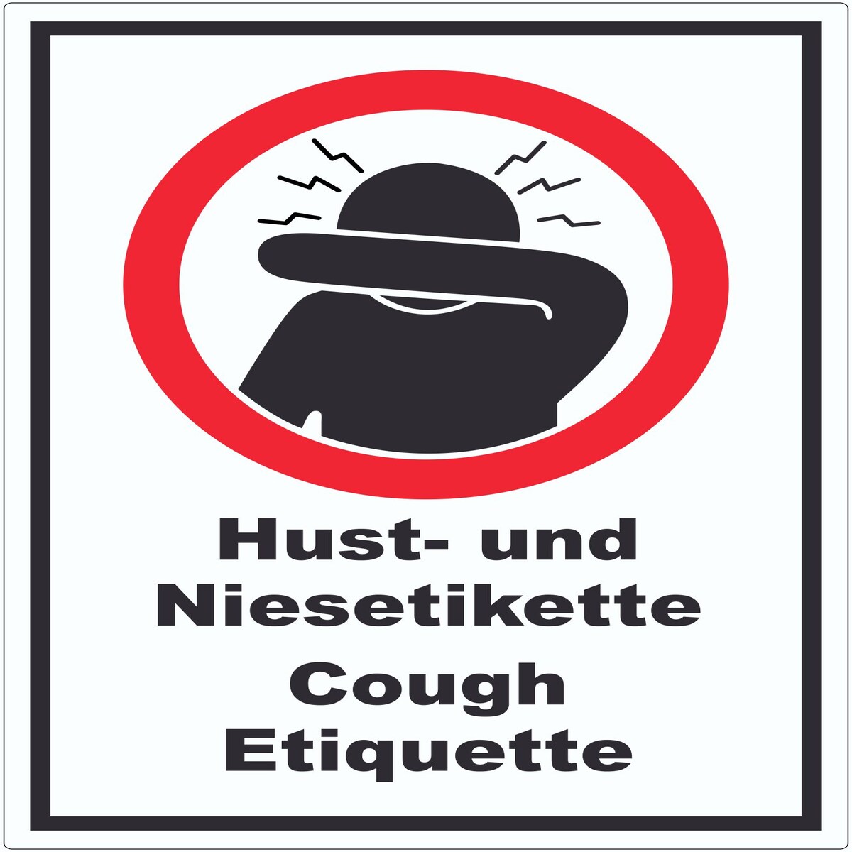 Husten und Niesetikette beachten Cough Etiquette Symbol und Text Schild A3 Rückseite selbstklebend