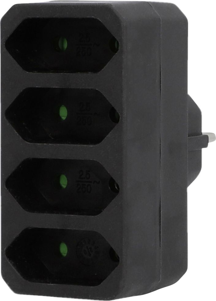 as-Schwabe Schutzkontaktstecker auf 4 Euro-Stecker 230V 16A Adapter Schwarz IP20
