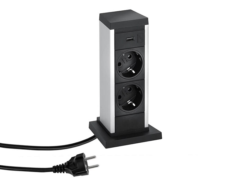 Schulte EVOline Port 03.010 versenkbare Steckdose 2 + 2 fach USB Charger unten