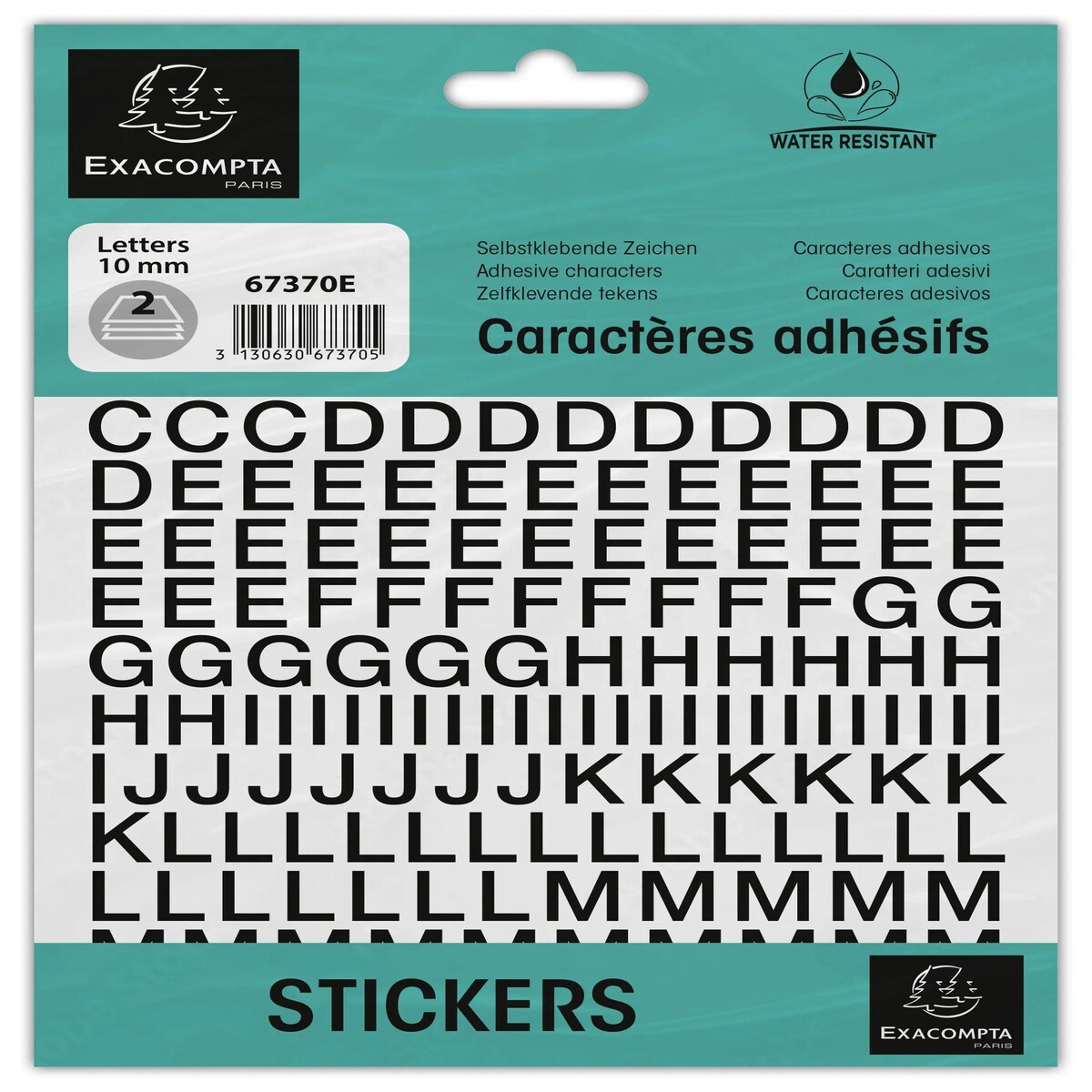 Exacompta 67370E 10x Packung mit selbstklebenden, schwarzen Buchstaben A-Z 10 mm - Schwarz