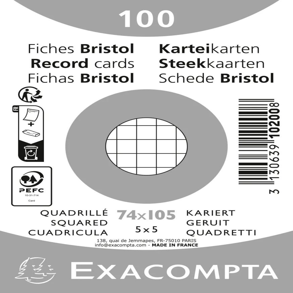 Exacompta Karteikarte A4 205g kariert weiß, 100 Stück