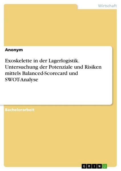Exoskelette in der Lagerlogistik. Untersuchung der Potenziale und Risiken mittels Balanced-Scorecard und SWOT-Analyse, Taschenbuch von , GRIN,
