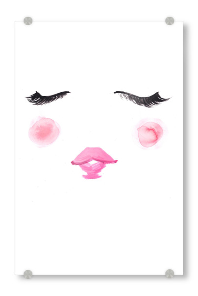 Acrylglasbild "Blush" artboxONE - Fashion - Wimpern,Niedlich,Rosa,Mode illustration,Gesicht,Face,Lashes,Cute,Blush,Lips,Lippen,Eyes,Augen