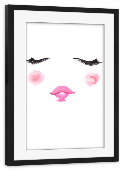 Poster mit Rahmen schwarz "Blush" artboxONE - Fashion - Wimpern,Niedlich,Rosa,Mode illustration,Gesicht,Face,Lashes,Cute,Blush,Lips,Lippen,Eyes,Augen