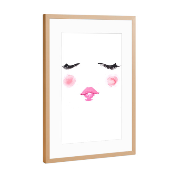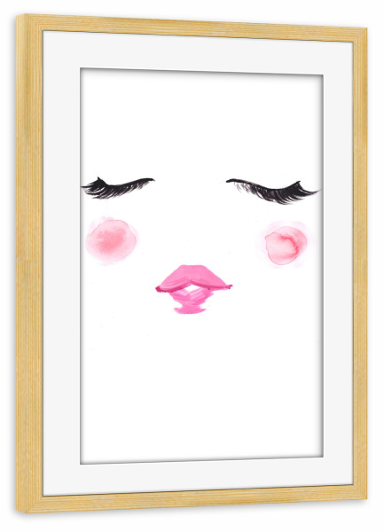 Poster mit Rahmen kiefer "Blush" artboxONE - Fashion - Wimpern,Niedlich,Rosa,Mode illustration,Gesicht,Face,Lashes,Cute,Blush,Lips,Lippen,Eyes,Augen