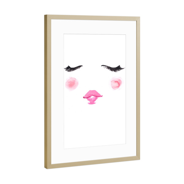Poster mit Rahmen Gold "Blush" artboxONE - Fashion - Wimpern,Niedlich,Rosa,Mode illustration,Gesicht,Face,Lashes,Cute,Blush,Lips,Lippen,Eyes,Augen