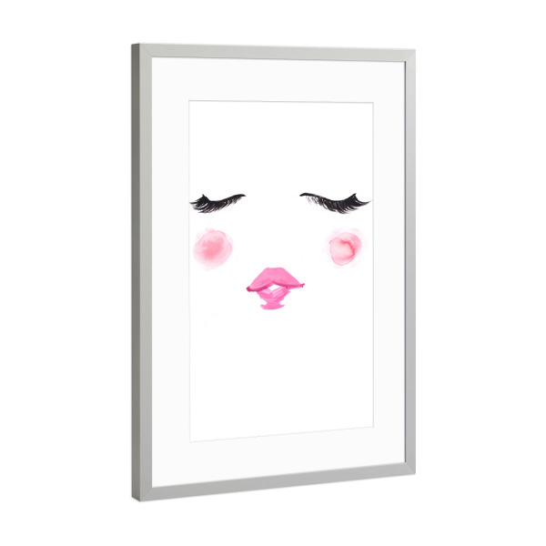 Poster mit Rahmen Silber "Blush" artboxONE - Fashion - Wimpern,Niedlich,Rosa,Mode illustration,Gesicht,Face,Lashes,Cute,Blush,Lips,Lippen,Eyes,Augen