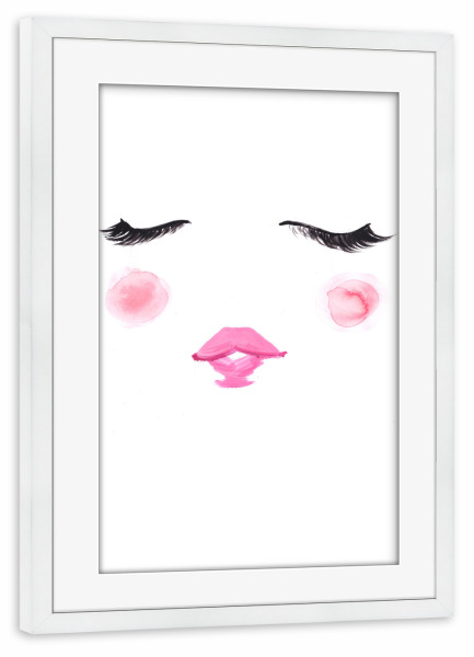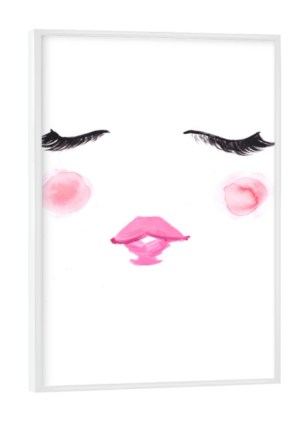 Poster mit Rahmen weiß "Blush" artboxONE - Fashion - Wimpern,Niedlich,Rosa,Mode illustration,Gesicht,Face,Lashes,Cute,Blush,Lips,Lippen,Eyes,Augen