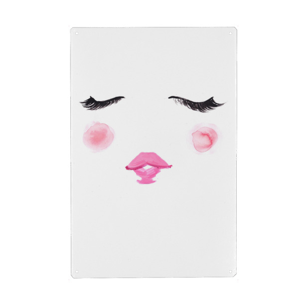 Metall Poster "Blush" artboxONE - Fashion - Wimpern,Niedlich,Rosa,Mode illustration,Gesicht,Face,Lashes,Cute,Blush,Lips,Lippen,Eyes,Augen