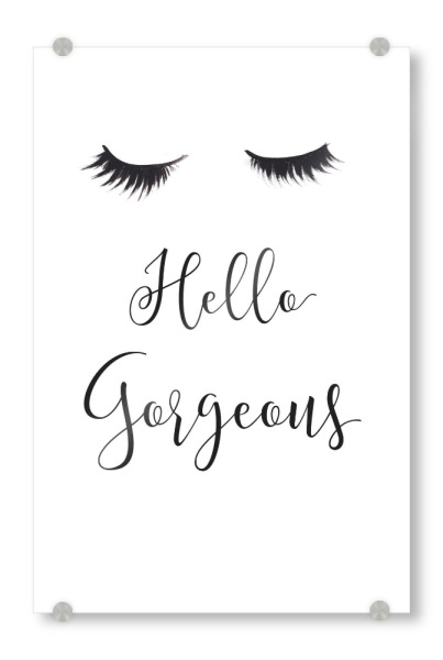 Acrylglasbild "Hello Gorgeous" artboxONE - Schwarzweiß,Fashion - Mode,Illustration,Wimpern,Hallo wunderschön,Lashes,Gesicht,Face,Eyes,Augen