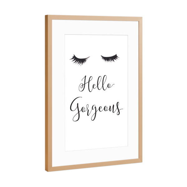 Poster mit Rahmen Kupfer "Hello Gorgeous" artboxONE - Schwarzweiß,Fashion - Mode,Illustration,Wimpern,Hallo wunderschön,Lashes,Gesicht,Face,Eyes,Augen
