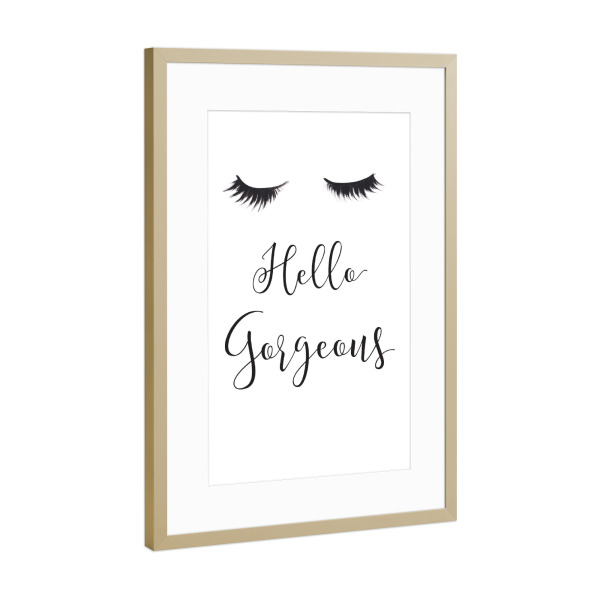 Poster mit Rahmen Gold "Hello Gorgeous" artboxONE - Schwarzweiß,Fashion - Mode,Illustration,Wimpern,Hallo wunderschön,Lashes,Gesicht,Face,Eyes,Augen