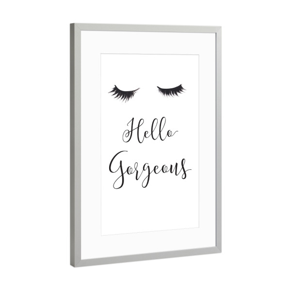 Poster mit Rahmen Silber "Hello Gorgeous" artboxONE - Schwarzweiß,Fashion - Mode,Illustration,Wimpern,Hallo wunderschön,Lashes,Gesicht,Face,Eyes,Augen