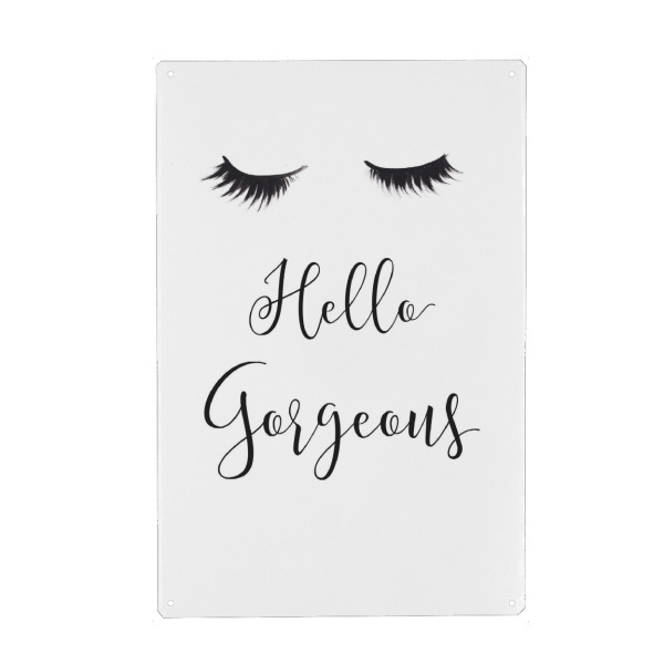 Metall Poster "Hello Gorgeous" artboxONE - Schwarzweiß,Fashion - Mode,Illustration,Wimpern,Hallo wunderschön,Lashes,Gesicht,Face,Eyes,Augen