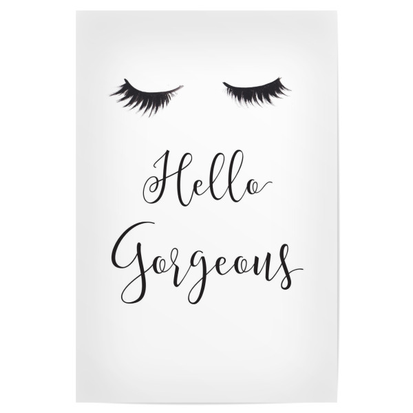 Poster "Hello Gorgeous" artboxONE - Schwarzweiß,Fashion - Mode,Illustration,Wimpern,Hallo wunderschön,Lashes,Gesicht,Face,Eyes,Augen