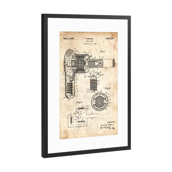 Poster mit Rahmen Schwarz (Metallic) "Haartrockner Patent (Antik)" artboxONE - Fashion,Streetart - Patent,Haar,Haartrockner,Fön,Föhn
