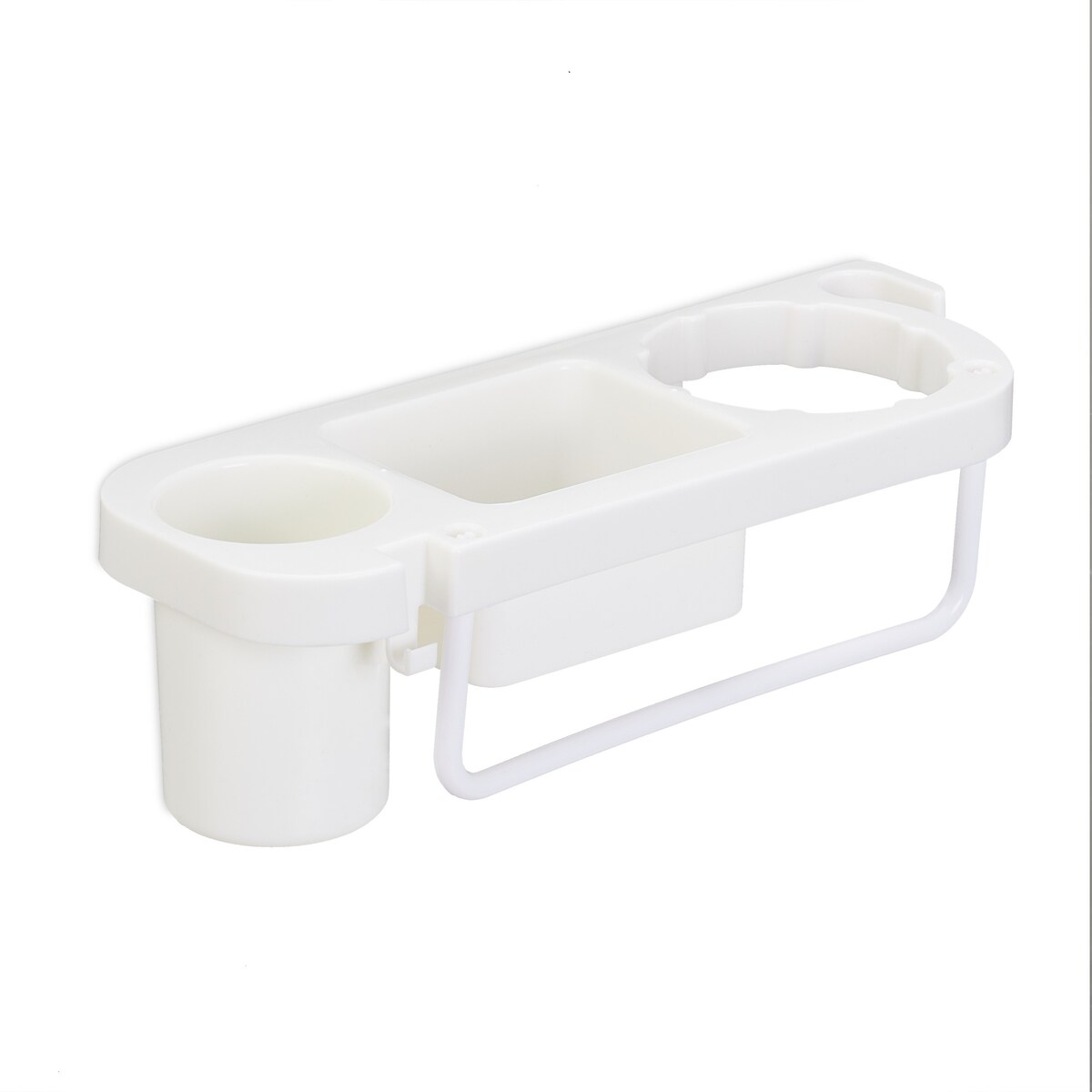 Relaxdays Föhn Halterung ohne Bohren, Kunststoff, mit Kabelhalter & Ablagen, Föhnhalter Wand, HBT: 9x30x10,5 cm, weiß