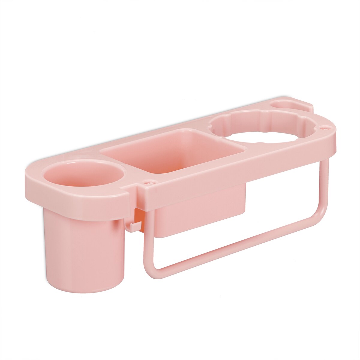 Relaxdays Föhn Halterung ohne Bohren, Kunststoff, mit Kabelhalter & Ablagen, Föhnhalter Wand, HBT: 9x30x10,5 cm, rosa