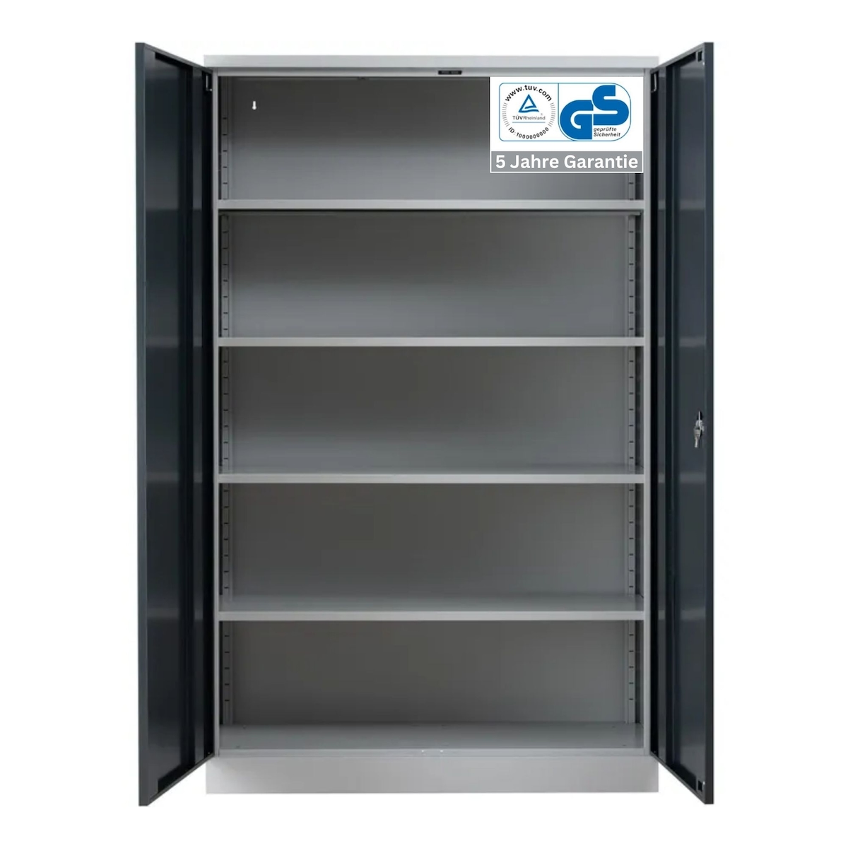 PROREGAL Stahlschrank BEE mit 7 verzinkten Fachböden | HxBxT 195x120x42cm | Grau-Anthrazit | Werkstattschrank Werkzeugschrank Aktenschrank
