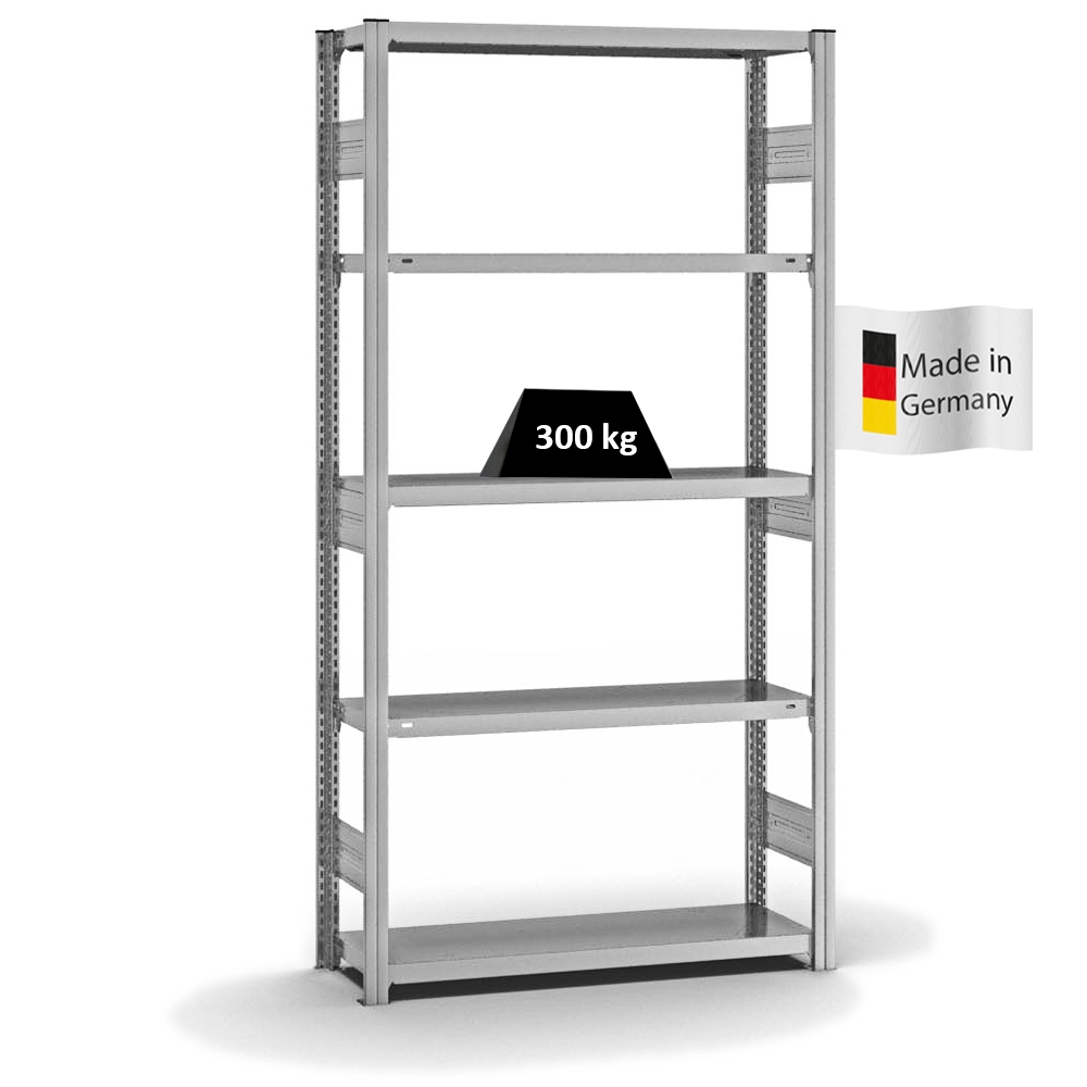 PROREGAL Fachbodenregal Stecksystem | Grundregal | HxBxT 200x75x30cm | 5 Ebenen | Fachlast 300 kg | Einseitig nutzbar | Verzinkt
