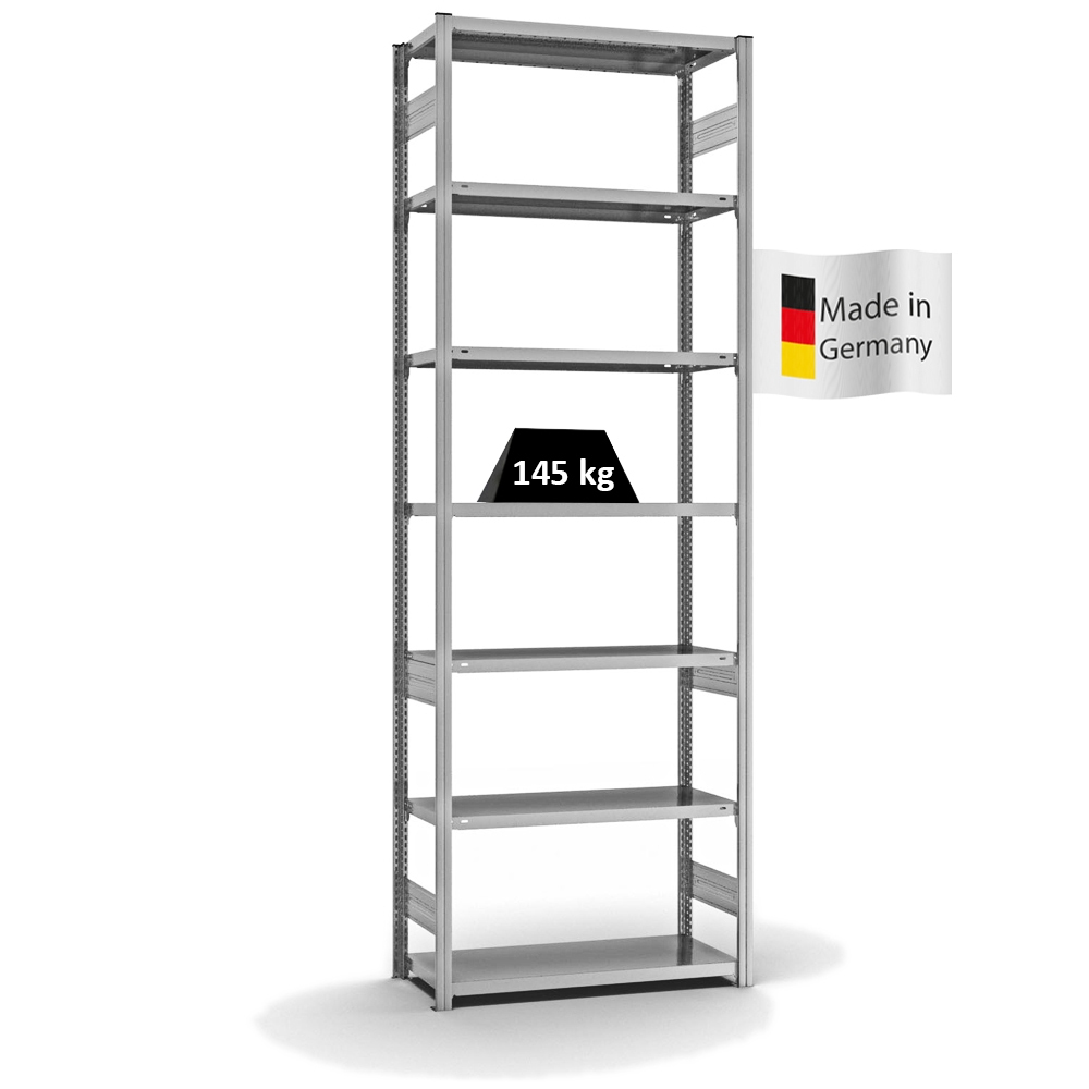 PROREGAL Fachbodenregal Stecksystem MAGNUS Germany | HxBxT 300x130x80cm | 7 Ebenen | Fachlast 330 kg | Einseitig nutzbar | Verzinkt