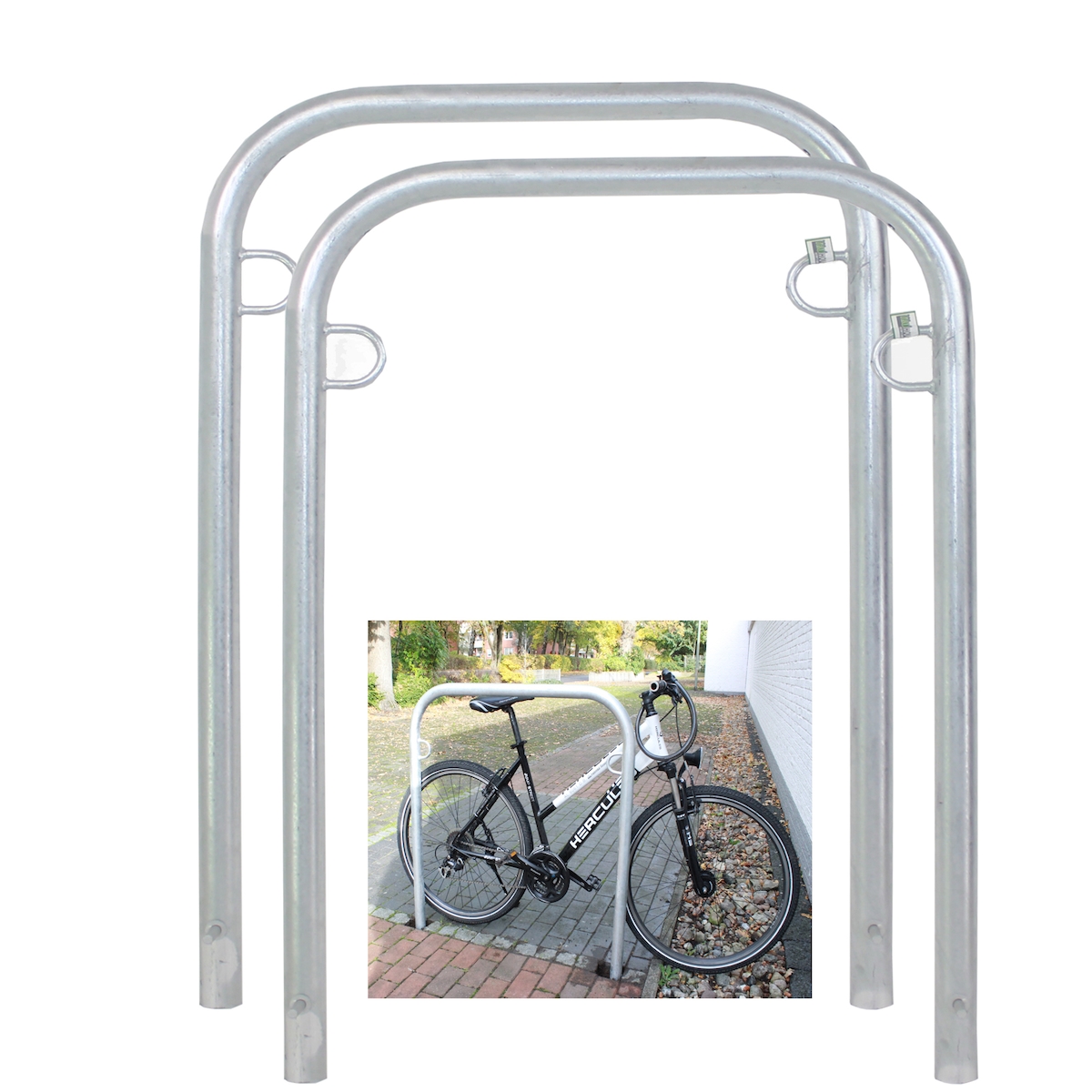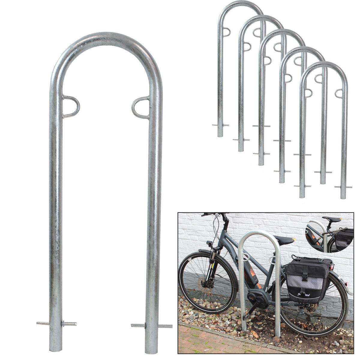 5x Fahrradanlehnbügel 115x58 cm Stahl feuerverzinkt Ø 48 mm zum Einbetonieren | Baumarktplus