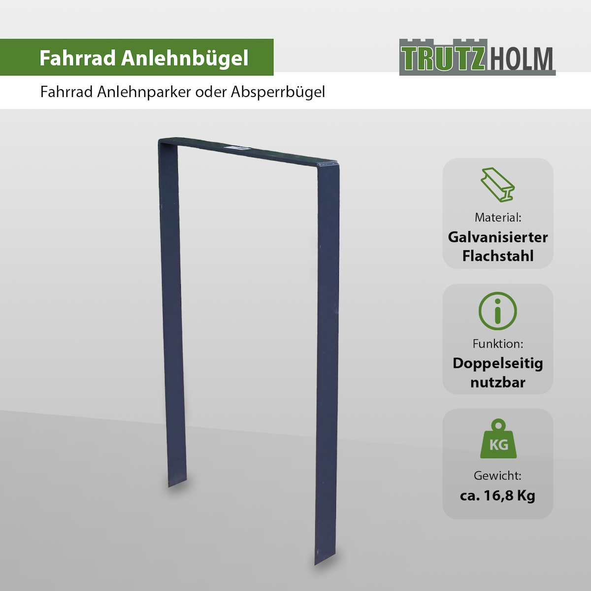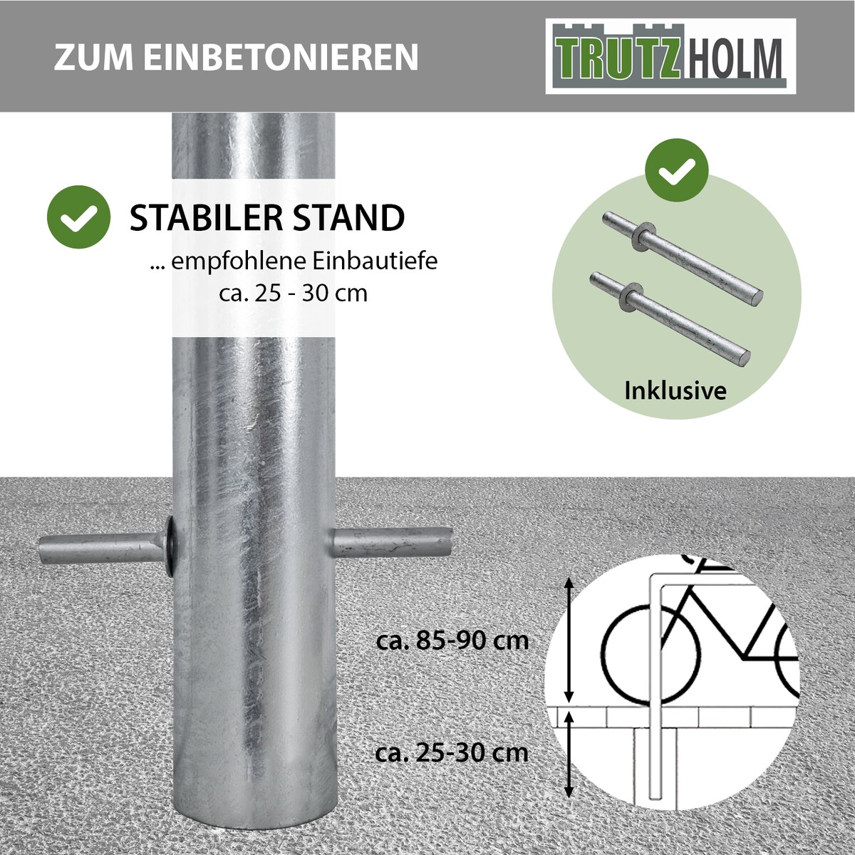 TRUTZHOLM Absperrbügel 200 x 75 cm Stahl feuerverzinkt Ø 60 mm zum Einbetonieren Fahrradanlehnbügel in grau
