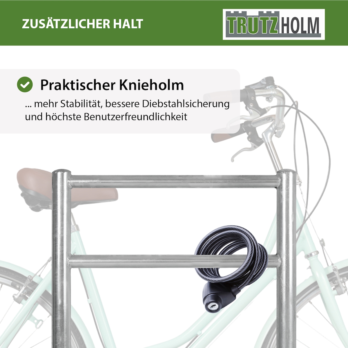 Fahrradanlehnbügel mit Knieholm 115x75 cm aus pulverbeschichtetem Stahl Ø 60 mm zum Einbetonieren